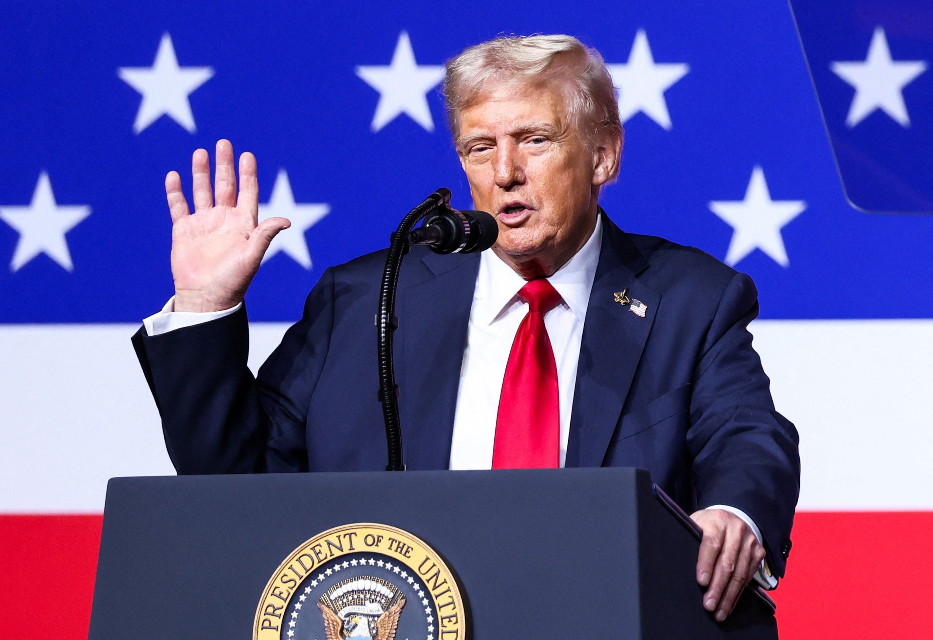 President Donald Trump speaks during a meeting of senior military leaders convened by U.S. Defense Secretary Pete Hegseth, at Marine Corps Base Quantico in Quantico, Virginia, September 30, 2025.